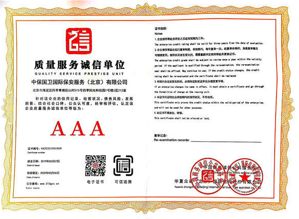 中保國衛(wèi)國際保安服務(wù)(北京)有限公司,屬中保國衛(wèi)集團(tuán)旗下子公司。能全方位的為大型客戶提供優(yōu)質(zhì)的安保、押運(yùn)服務(wù),是集人防和技防于一體的新型正規(guī)化綜合安保押運(yùn)服務(wù)企業(yè),提供人防、物防、技防、聯(lián)網(wǎng)報(bào)*、非武裝押運(yùn)等安防相關(guān)的一站式服務(wù)。 公司在國內(nèi)多省設(shè)立有分公司及分支機(jī)構(gòu),著重提升安全押運(yùn)、智能技術(shù)押運(yùn)及安全技術(shù)防范相關(guān)的服務(wù),業(yè)務(wù)范圍覆蓋全國一、二線城市、港澳地區(qū)以及海外地區(qū)。安保方面主要為政府機(jī)構(gòu)、金融機(jī)構(gòu)、企事業(yè)單位、醫(yī)療衛(wèi)生、高等院校、工業(yè)園區(qū)、大型商場、高檔住宅、智能商務(wù)樓、大型活動(dòng)提供門衛(wèi)、守護(hù)、巡邏、押運(yùn)(非武裝)、安全檢查、保安特勤、私人護(hù)衛(wèi)、消防中控、安全技術(shù)防范、遠(yuǎn)洋護(hù)航等全方位服務(wù),同時(shí)面向國際市場,為中資企業(yè)在“一帶一路”沿線國家投資提供境外安保服務(wù)。 >> 更多內(nèi)容 |